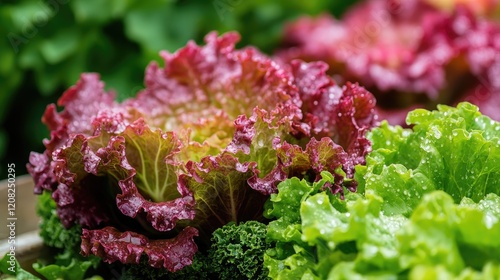 Vibrant summer harvest of fresh green and red lettuce showcasing the beauty of organic produce in a lush garden setting