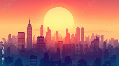 Vibrant Sunrise Over Urban Skyline with Clear Space for Text and Design Elements