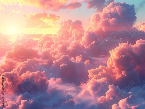Vibrant sunset over fluffy clouds creating a serene atmosphere at twilight. Generative AI