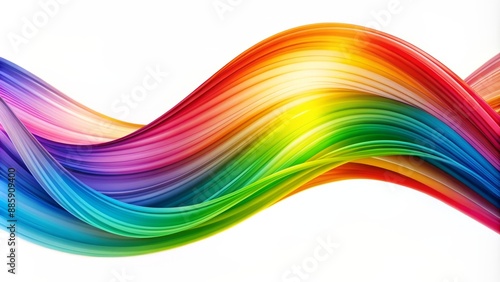 Vibrant, swirling, abstract rainbow wave form undulates across a clean, crisp white background, exuding energy, dynamism, and mesmerizing visual appeal.