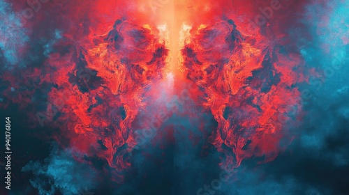 Vibrant swirling clouds of red and blue create a dramatic and mystical atmosphere, perfect for artistic and abstract designs.