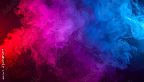 Vibrant swirling smoke in pink, blue, and red hues