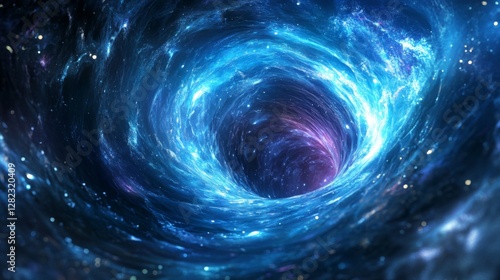 Vibrant Swirling Vortex in Deep Blue and Purple Nebula of the Universe