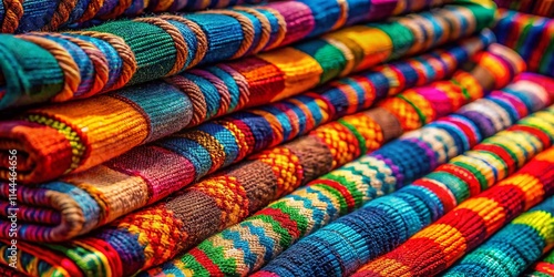 Vibrant Textile Close-Up: Colorful Fabric Textures, Detailed Thread Photography