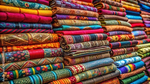 Vibrant Textiles: A Stunning Display of Colorful Fabrics Interwoven in an Artistic Composition Emphasizing the Rule of Thirds for Visual Harmony and Aesthetic Appeal