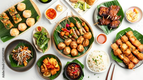 Vibrant Top View of Authentic Indonesian Food on White Background in Stunning 8K Quality