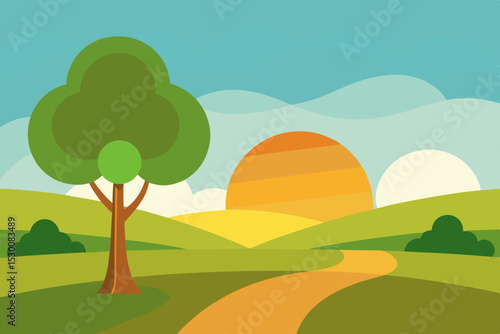 Vibrant Tree Field Animation Video Background with Sunrise Vector