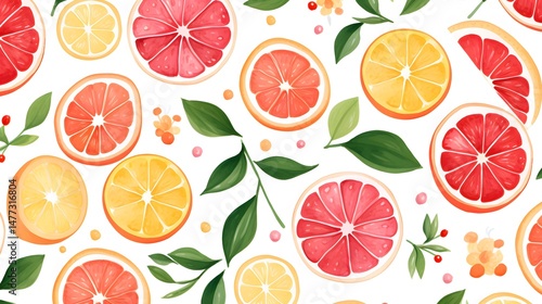 Vibrant Tropical Seamless Pattern with Red Oranges and Grapefruits for Design Projects