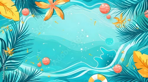 Vibrant Tropical Summer Doodle Border Design with Blank Space for Customizable Background