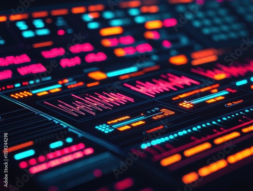 Vibrant Virtual Control Interface with Glowing Elements and Dynamic Visualization for Modern Technology and Innovative Applications
