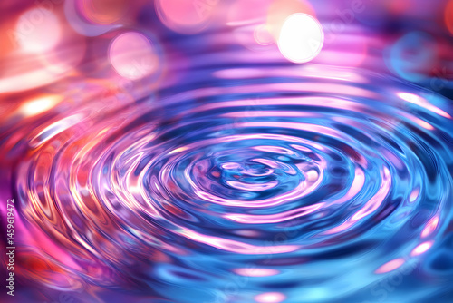 Vibrant Water Ripples with Colorful Bokeh Backgrounds in Motion