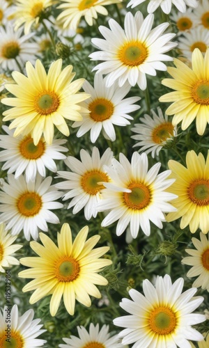 Vibrant watercolor daisies in a bright yellow and white palette , winter, white, rustic