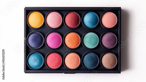 Vibrant Watercolor Palette with Neatly Arranged Brushes on White Background