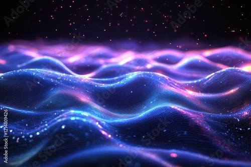 Vibrant waves of light create an otherworldly atmosphere in a cosmic landscape