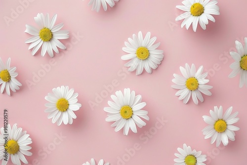 Vibrant White Daisies with Yellow Centers on a Pink Backdrop for a Bright and Joyful Design. Generative AI