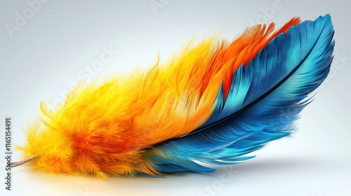 Vibrant yellow and blue feathers with natural texture on a minimalist background
