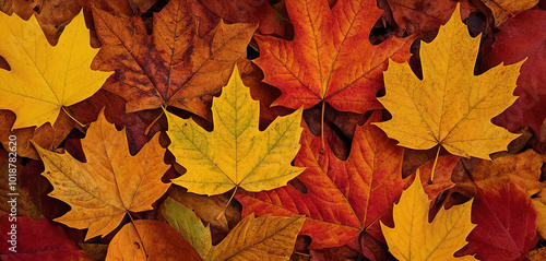 Vibrant yellow, orange, and red leaves cover the ground, creating a beautiful tapestry under the gentle sunlight of an October afternoon