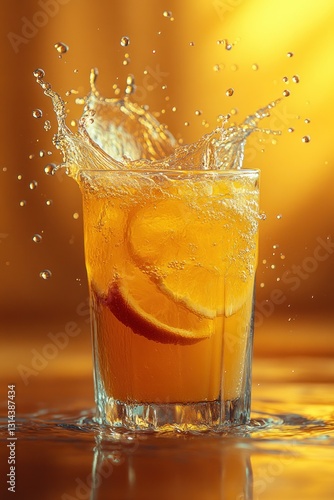 Vibrant Yellow Orange Juice Splash in Glass Isolated on White Background Fresh Healthy Beverage