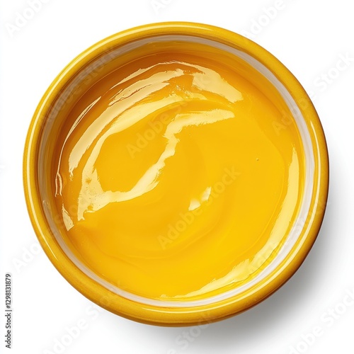 Vibrant Yellow Paint in Round Bowl with Smooth Water-like Texture Captured in a Bright and Clean Setting for Art and Design Projects