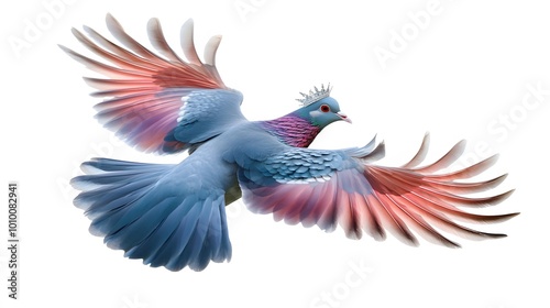 Victoria Crowned Pigeon Bird Flying on White Background, Photo Realistic, Wallpaper, Cover and Screen for Smartphone, PC, Laptop, 9:16 and 16:9 Format