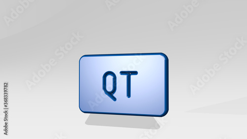 vide document qt stand with shadow. 3D illustration of metallic sculpture over a white background with mild texture. business and concept