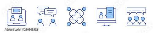 video call, online interview, team meeting, discussion, teamwork. Meeting Icon vector illustration. Line Duotone style. Editable stroke