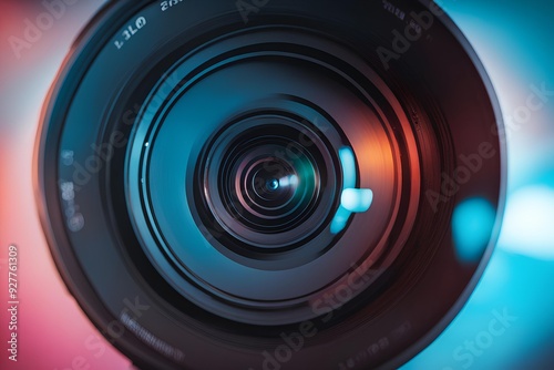 Video camera lens audiovisual electronic device with focus glass zoom objective for digital optic media videographer technology