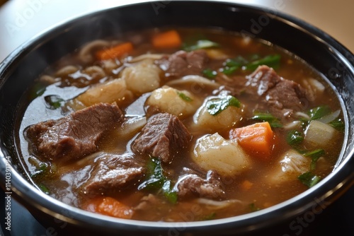 Vietnamese beef noodle soup with assorted meats served hot for meals