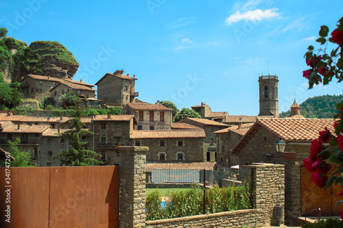 View of a small remote town of medieval type. Located in mountainous terrain on an extinct volcano.