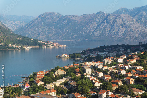 View of mountains and Kotor Bay, largest bay of the Adriatic Sea, Montenegro