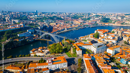 View of Porto, a coastal city in northwest Portugal known for its stately bridges and port wine production