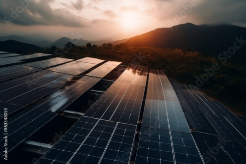 View of solar panels at dusk