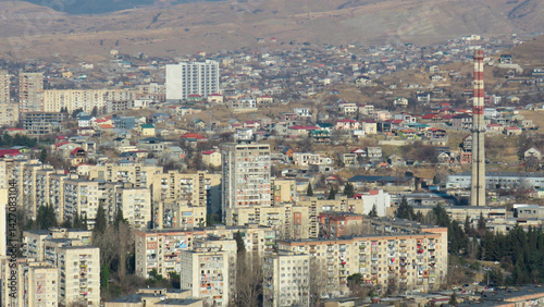 View of Tbilisi residential area from above in spring, Georgia