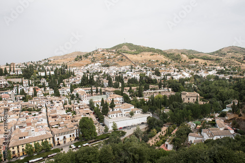 View of the city from the top of Palacio Nazares at Granadda, Spain. The bird's eye view of the city with lush greeneries look amazing. The day seems to be sunny.