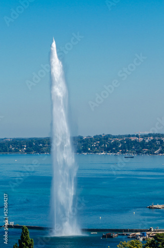 View of the Jet d'Eau, a large fountain in Geneva, Switzerland
