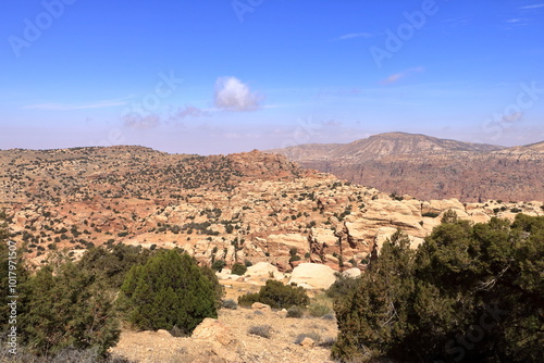 view of the landscape of the Dana Biosphere Nature Reserve National Park, Jordan