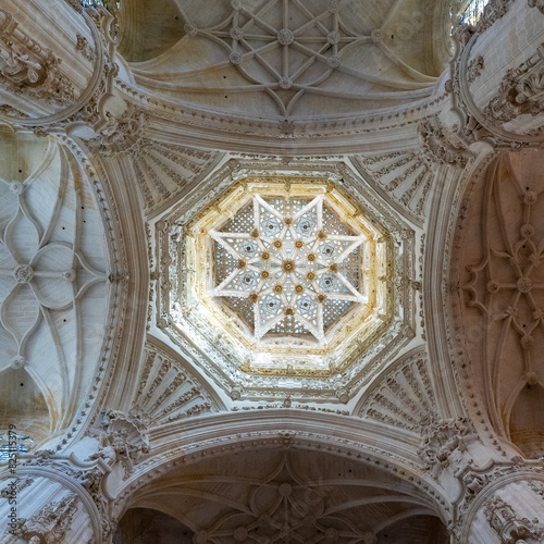 view of the ornate ceiling and cupola of the Constable Chapel in the historic Burgos Cathedral