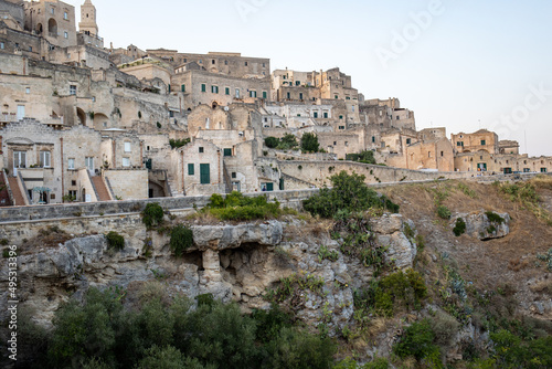 View of the Sassi di Matera a historic district in the city of Matera, well-known for their ancient cave dwellings. Basilicata. Italy