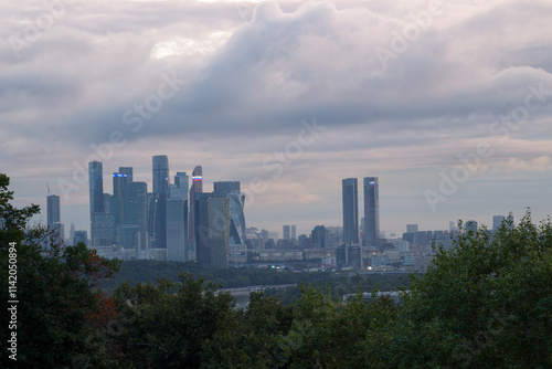 View of the skyscrapers of Moscow's business district. Observation deck on Vorobyovy Gory.