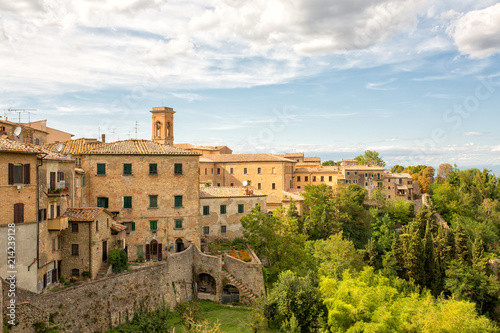 View on the old town and exterior walls of Volterra, Tuscany, Italy.