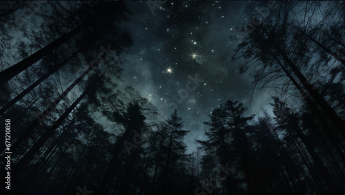 viewed from below a forest at night