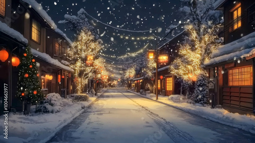 village street of the city decorated for Christmas