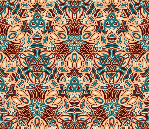 Vintage abstract seamless pattern, background. Composed of colored geometric shapes. Useful as design element for texture and artistic compositions.
