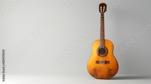 Vintage Acoustic Guitar on Plain White Studio Backdrop