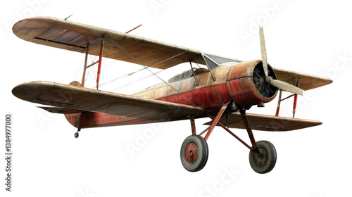 Vintage Airplane in Flight: A meticulously detailed, antique biplane with a classic design is showcased, evoking nostalgia and the spirit of aviation's golden age.