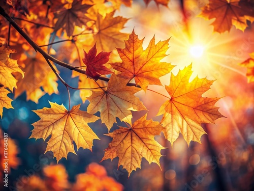 Vintage Autumn Maple Leaf Foliage - Golden Hour Sunlight