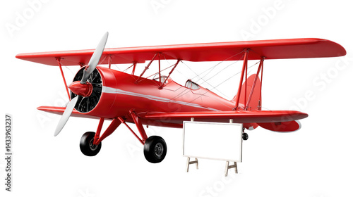 Vintage Biplane: A meticulously crafted, vibrant red biplane, embodying the golden age of aviation, stands ready for flight, capturing a sense of adventure and nostalgia.