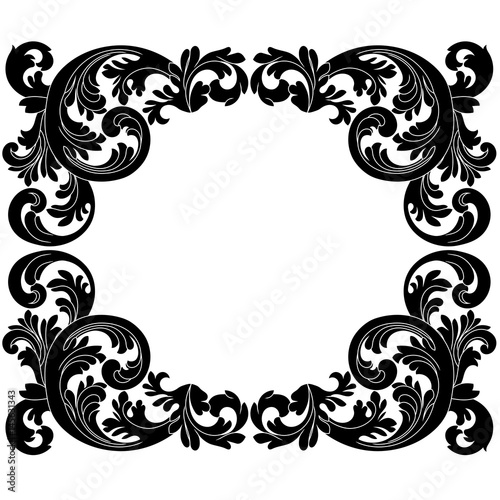 Vintage border frame engraving with retro ornament pattern in antique baroque style decorative design. Vector.