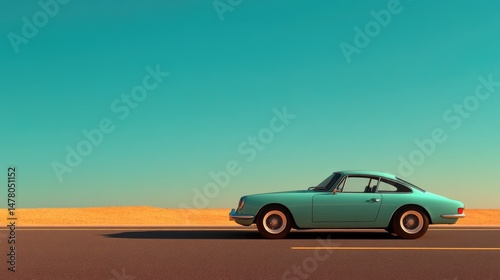 Vintage car on open road under blue sky minimalist design classic automobile travel and transportation