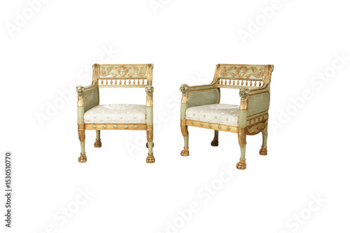 vintage chair isolated on white Pair of Empire Style Painted and Gilt Decorated Armchairs